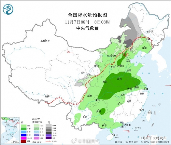 11月5-9日,将有较强冷空气自西向东影响我国大部地区,其中5-7日主要影响新疆及内蒙古西部地区,8-9日冷空气东移南下影响长江以北大部地区,局地降温10℃以上。