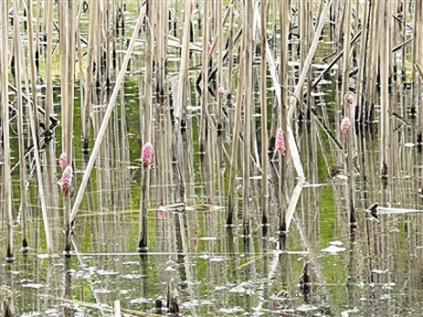 9月4日上午,记者来到位于京宛大道与黄河大道附近的北外环带状公园,看到在百余米的浅水区域中,林立的干枯植物茎秆上,散布着一个个如指肚大小的卵块,粉红色,呈椭圆形。仔细观察,卵块由一个个直径约两毫米的圆形卵组成,排列整齐,如同一串葡萄。部分卵块已经发白、孵化。