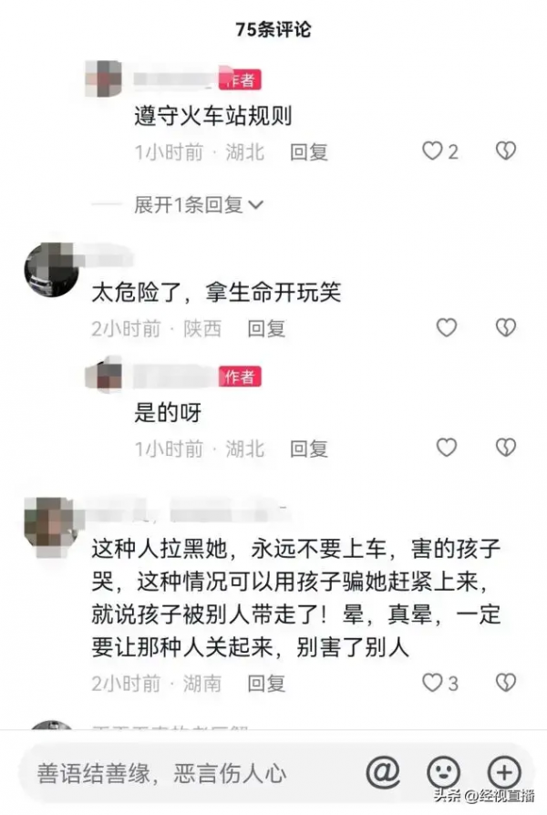 8月11日,有网友发视频称,在湖北省武汉市武昌火车站,一名女子擅自从车站站台上跳到火车轨道寻找孩子掉落的眼镜,该行为引发网友关注。