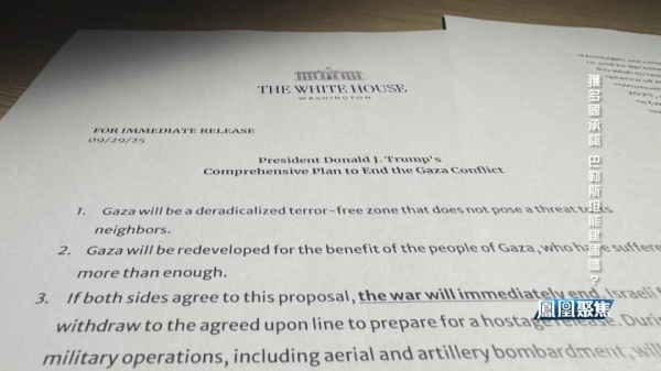 9月29日,以色列总理内塔尼亚胡宣布接受美国最新提出的加沙和平计划。这项计划提议以色列和哈马斯结束冲突。以色列军队将撤回到商定边界,哈马斯必须在以色列公开接受协议后的72小时内,归还所有活着和已死亡的人质。而一旦所有人质获释,以色列也将释放250名被判终身监禁的巴勒斯坦人和1700名自2023年10月7日冲突开始以来被拘留的加沙人。