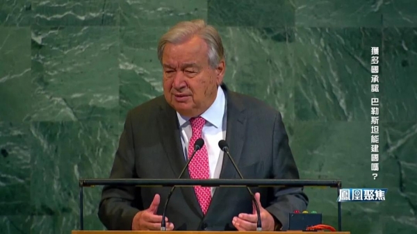 联合国秘书长古特雷斯则重申"两国方案"是巴以和平唯一可行路径,强调巴勒斯坦国地位"是权利而非奖励",驳斥了美以所谓"奖励哈马斯"的说法。