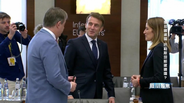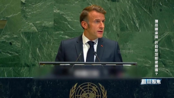 法国总统马克龙在会上明确表态,"时机已到,正因如此我谨秉承我国在中东地区的历史性承诺,为了以色列人民和巴勒斯坦人民之间的和平,我宣布,法国今天承认巴勒斯坦国。"