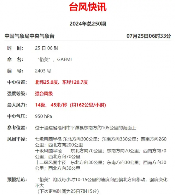 台风"格美"最新消息