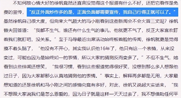 徐帆出面力挺冯小刚表示这条新闻的不实性。