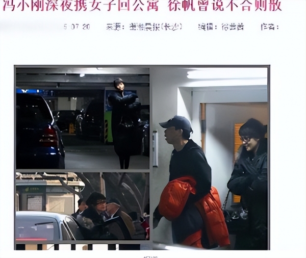报纸上赫然印着沈星和冯小刚并排从公寓地库出门的照片。