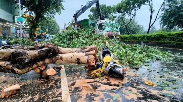据环球网报道,24日台风"格美"来袭,高雄市一女子骑车行经凤山区建国路一段时,遭强风吹倒的树木砸中,不幸身亡。