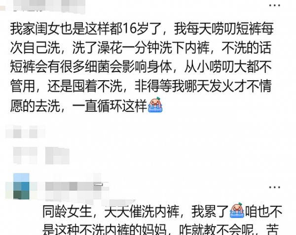 有人觉得不可思议:"初中生连内裤都不洗?我们小时候住校,谁不是自己搓衣服?"另一部分家长则无奈解释:"现在孩子作业写到半夜,早上六点起床,哪有时间管这些?"