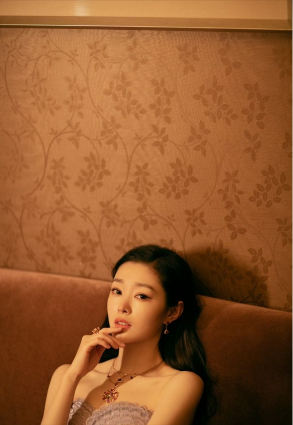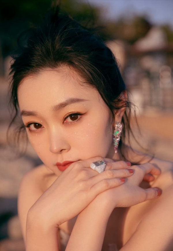 她的妆容选择了清透自然的底妆,重点突出了水润光泽感,让肌肤看起来细腻又通透。而唇妆则用了微亮的红色,既衬托了礼服的温柔感,又为整体气质注入了一点力量,避免了过度"甜腻"。这就是温柔与气场的平衡。