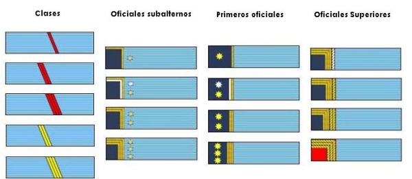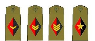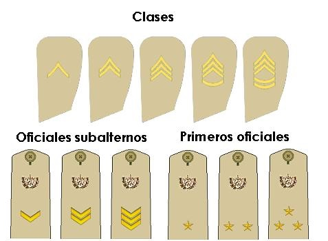 1940-1959年代的古巴军衔,第一排(士兵)为袖章,第二排(校尉官)为肩章。巴蒂斯塔时代古巴将官军衔的表示方法极为复杂,此处省略