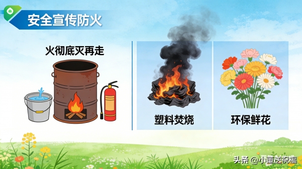 尽量少烧纸,或者用鲜花代替。 如果一定要烧,务必在指定的焚烧桶里烧,等火彻底灭了、一点火星都没有了再走。风大的天气,能不烧就不烧。