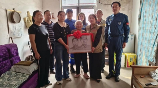 志愿者帮忙找到地点后,还找来安徽师范大学的红色青春守护人工作室,给王希芳夫妻俩画了肖像。