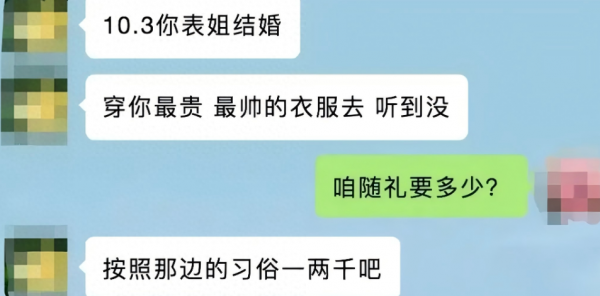 另一位24岁的网友,自己收到5张婚贴,3号有两个,5号有两个,6号有一个,全是午宴,每个人大概给600-800元份子钱,如果每场婚礼都参加的话,除非自己能"分身"!