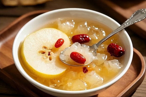 雪梨清热润肺,针对甲流后的干咳不爽、咽痒无痰特别有效。银耳富含植物胶质,能帮助修复气道黏膜、增强局部抵抗力。