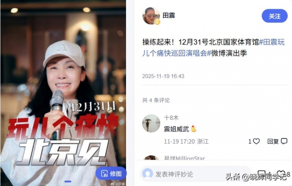 在11月19日的时候,田震更是在社交媒体上发布排练照片。