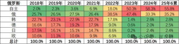 2018-2025上半年俄罗斯汽车市场各系品牌份额 崔东树
