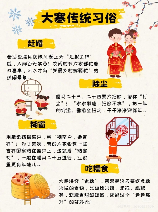 ② 备年:扫尘除旧、贴春联、备年货,街巷年味渐浓,把岁末的仪式感拉满;