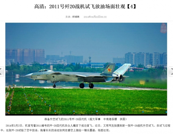 ▲歼-20首架原型机首飞是2014年