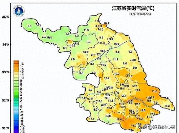 截至16日08时,江苏各地气温还较舒适:淮河以北大部分地区8℃-10℃,沿江及苏南大部分地区10℃-12℃。白天最高温可观,淮北地区19℃-20℃,其他地区21℃-22℃,不少人还穿着单衣、薄外套,未察觉寒意逼近。但根据预报,这股冷空气16日下午会自北向南"横扫"江苏,48小时内全省最低气温普遍下降8℃-9℃,局部地区降幅达10℃-11℃,降温速度如坐过山车,前一天还能穿薄衣,隔天就得裹厚外套。