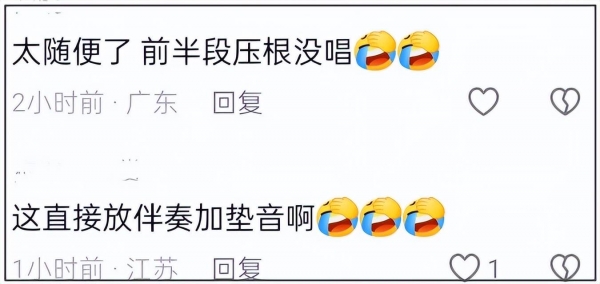 线上的吃瓜网友看了周杰伦演唱会现场视频后,也纷纷吐槽太随便,指出周杰伦现场直接放伴奏和垫音,很多段落几乎不唱,相当于一首歌只唱一半。