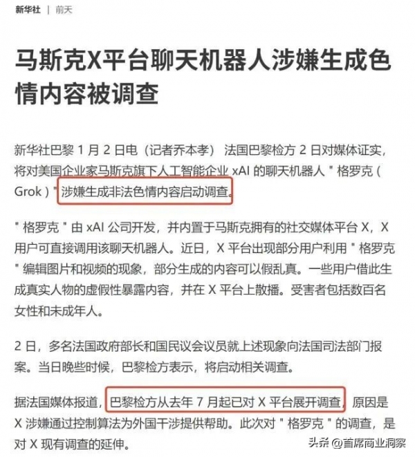 一方面是xAI常年处于亏损、烧钱的状态,再加上旗下的聊天机器人Grok深陷擦边风波,还被多国予以谴责和投诉,需要有资本为其输血。