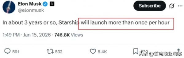 而且马斯克在社交平台X上还豪言:"未来3年后,星舰可能每小时会发射多次。"