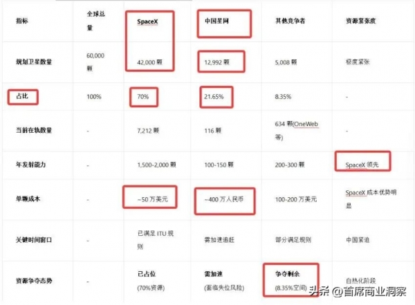 而且,从单颗卫星的成本来看,SpaceX的成本也相对较低,控制在50万美元左右,约合人民币345.67万元,较中国星网的400万元和其他同行的超百万元美元成本,有很明显的优势。