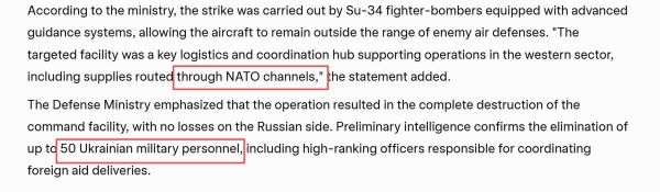 俄媒毫不避讳地指出,指挥所内有"北约现役军官",这等于是直接打了西方的脸。