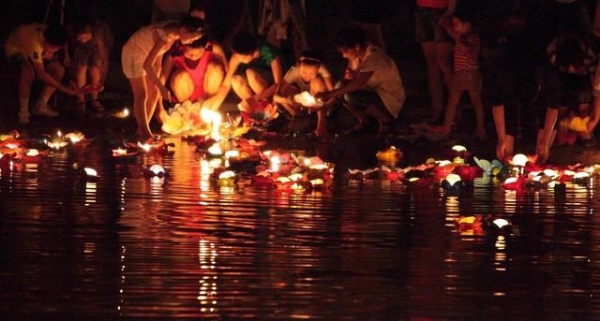 每年农历的七月十四或七月十五这天,人们以供奉祭品、烧纸烛、放河灯等仪式祭祀祖先,顺带祈祷风调雨顺、国泰民安、家族兴旺。