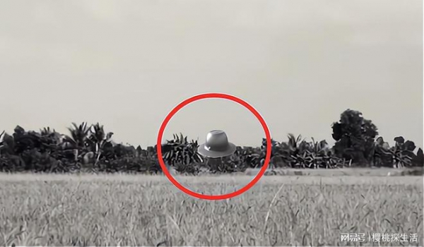 过了几天,3个男孩又一次跑去稻田里寻找,远远地看到不明飞行物落在地面上,其中一个孩子跑回家拿上相机,并拍下了银色金属帽的样子。