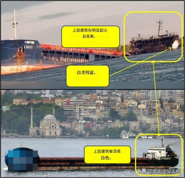 开源情报分析认为,至少船上部建筑被命中