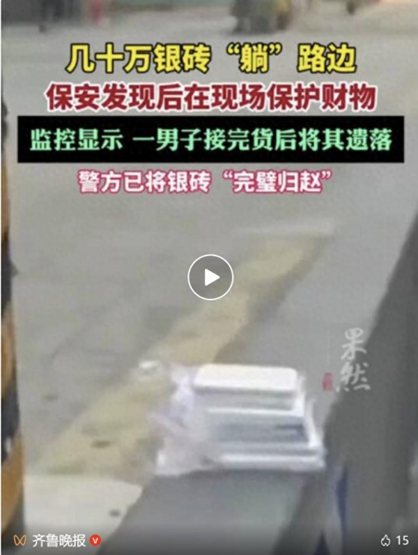 随后民警到场将银砖带回派出所,并联系上了失主。最终,这几块总价值几十万的银砖"完璧归赵"。