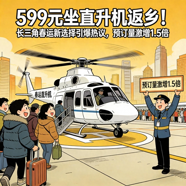 2026年春运,长三角地区出现了一种全新返乡方式--599元坐直升机回家!这个价格比高铁还便宜,比飞机还快,让不少打工人直呼"这年过得太值了"!