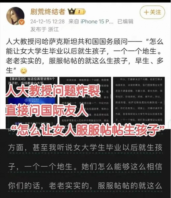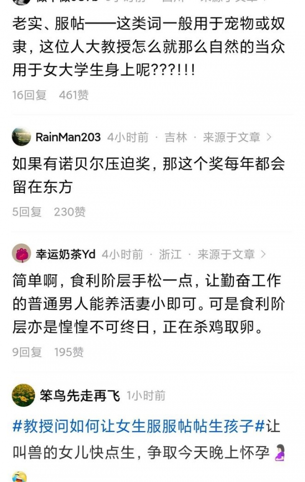 炸裂,一个堂堂的人大教授竟然提出这样让人无语的问题:怎么样让女大学生老老实实、服服帖帖的生孩子,一个一个接着生……