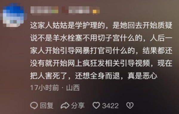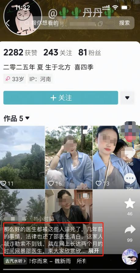 明明母女平安,可家属却认为是邵医生让他们绝后了,一家人不断发视频网暴邵医生,言辞激烈,指向性极强。