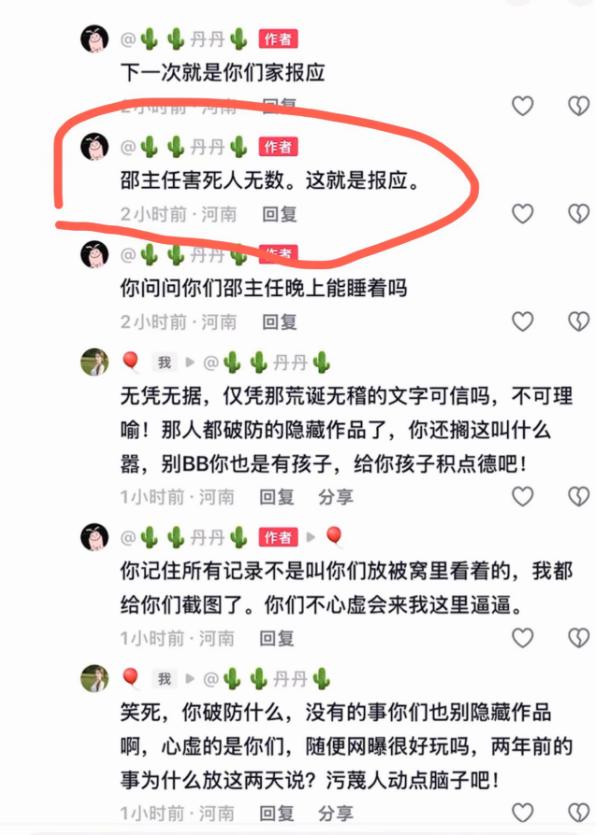 另一个网暴者甚至公开宣称邵主任害人无数,如今的局面就是报应。