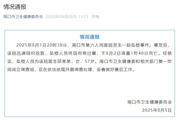 8月1日发生了一件非常痛心的事情,周口某医院妇产科邵晓蓓主任坠楼身亡,原因是被网暴。