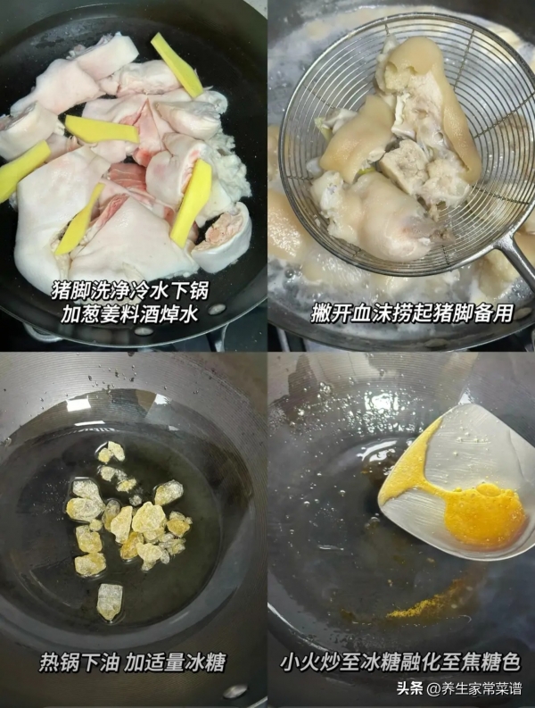 处理小技巧:猪蹄切块后,用面粉抓洗一遍,能去掉表面的黏液和杂质;焯水后用厨房纸擦干水分,炒糖色时小火慢炒,避免炒糊发苦,炖出来的猪蹄颜色更亮。