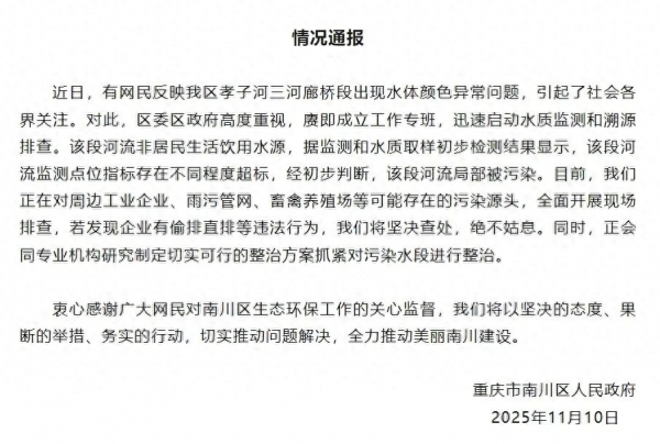 11月10日晚,重庆市南川区人民政府发布情况通报: