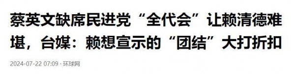 据报道,7月21日,民进党进行了"全台党代表大会","团结,守台"高悬会场,却被证实蔡英文不会出席,'团结'二字在会场上显得尤为讽刺。