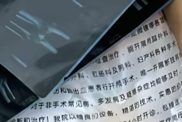 另外值得注意的是,她手上除了拿着一张CT照片外,还拿着一个应该是装CT照片的塑料袋,塑料袋上印刷的是中文。