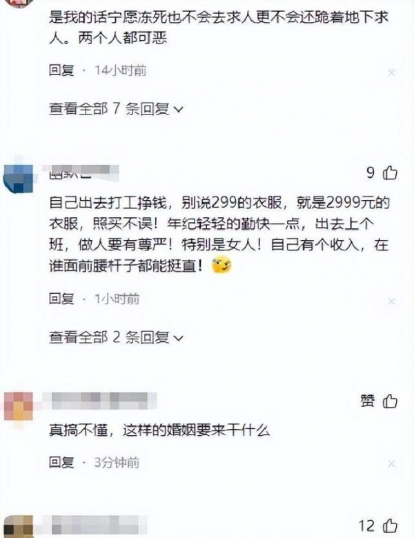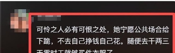 大家愤怒,大家不解。有人骂男人太绝情,有人哀其妻太卑微。为了不到三百块钱,在一个公共场所,双膝跪地,这婚姻得是多大的牢笼?