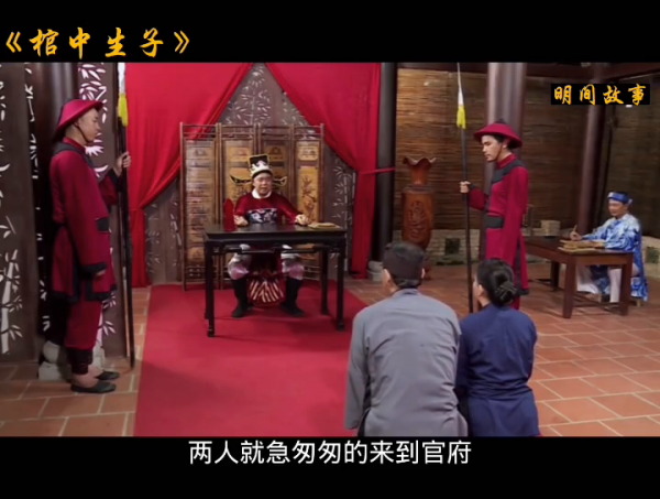 第二天,两人就急匆匆的来到官府,将晚上发生的事告诉大人。可大人以为老两口是在说笑话,根本不信他们所说,但是俩人坚持说真的有婴儿在哭,于是派人找到了墓地的主人。把事情跟男人讲了之后,男人也觉得不可思议,因为最近妻子老是在梦中呼唤自己,于是他决定去墓地开馆明察,没想到将棺材打开,还真有个孩子。