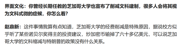 不过这种消息是很难证实或证伪的,所以赵鼎新也用了"据说""似乎"这种字眼。但是能知道的是,芝加哥大学确实是炒币的,芝加哥大学的炒币也是亏过钱的,芝加哥大学的财政也一直是有问题的......但是到底炒币亏了多少,对财政的影响是多少,是不是导致缩减文科的直接原因,那就很难说了。