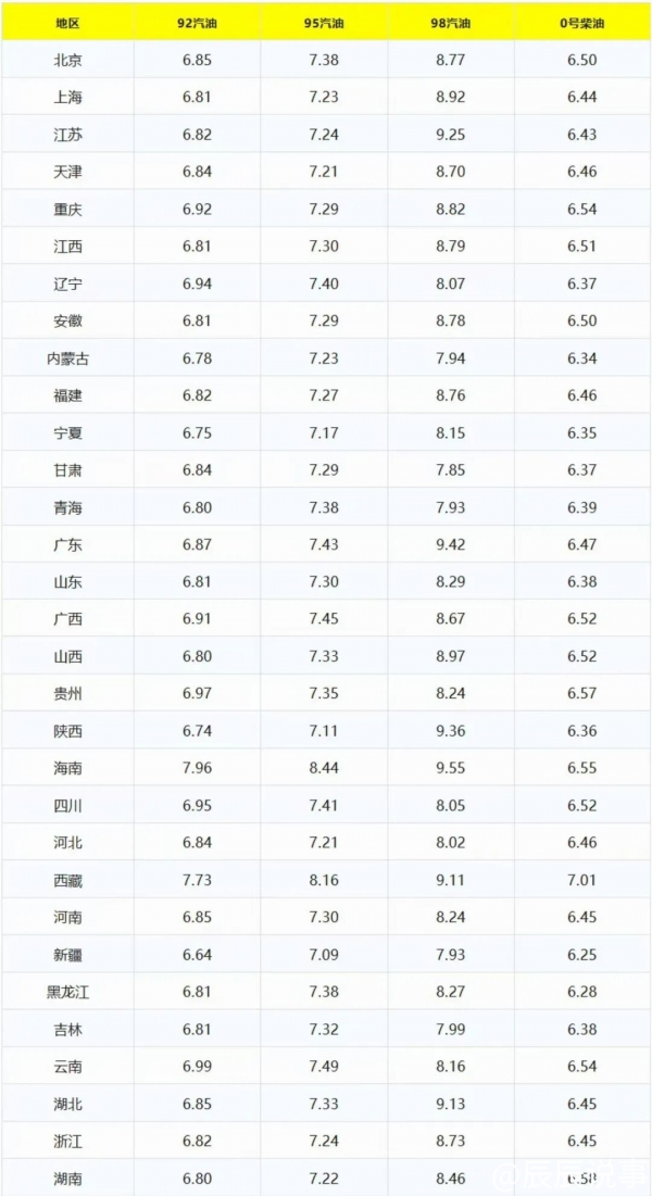 调整后全国油价区域差异显著。全国平均来看,92号汽油6.9元/升、95号汽油7.45元/升。北京92号7.69元/升、95号8.19元/升;上海92号7.65元/升、95号8.14元/升;广东92号7.70元/升、95号8.34元/升;新疆92号6.64元/升,为全国低价;海南因政策特殊,92号8.80元/升、95号9.34元/升,居全国首位。50升油箱家用车,加满92号汽油可省2元,物流企业用油成本降幅更明显,不少车主反馈"加油压力稍缓"。