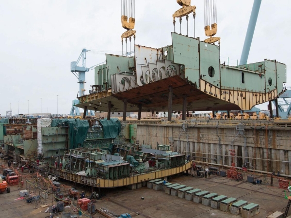 日媒称,11月份的卫星照片显示,航母的舰体主要框架已经基本组装完毕,并安装了2个长度16米、宽度14米的框架,此前的山东舰和福建舰均未出现类似构造,日本智库通过对美国在建的"福特"级航母"肯尼迪"号的卫星照片进行对比,发现美国航母在建造过程中也在类似区域安装了长度16米,宽度13米的大型框架,这是核反应堆安全壳的框架。
