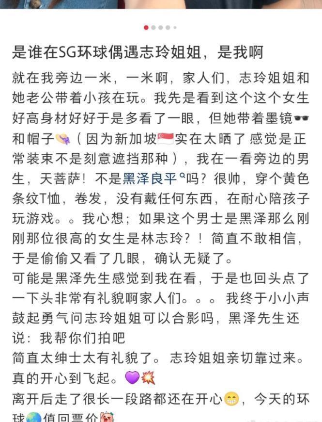 该网友称林志玲很亲切,黑泽良平很绅士,夫妻俩面对陌生人表现的很体面,可私底下呢?