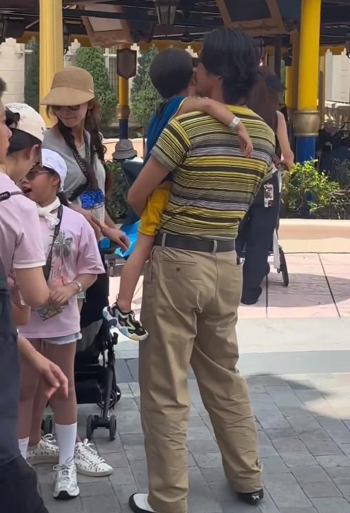 在排队游玩儿项目时,儿子也是归黑泽良平照顾,林志玲负责在队伍中占位置。