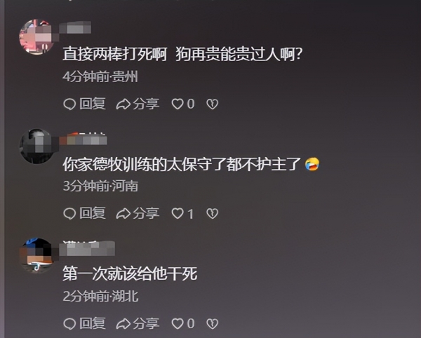 "咋这么多人说主人活该,说德牧没用的…这是什么逆天思维?要是德牧咬了小狗,又要发视频说大狗很危险,远离大狗…我也养大狗,我家狗就不会咬小狗,小狗咬它它都只会躲开,能怎么办…"