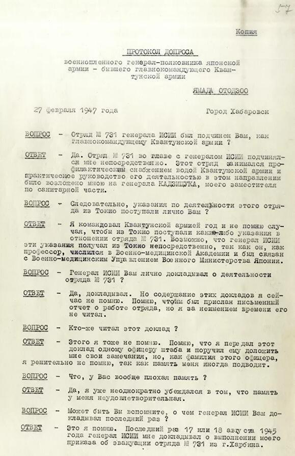 2021年俄方公布的山田乙三审讯记录 俄新社