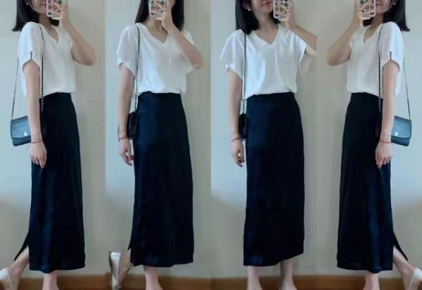 缎面和冰丝面料更火,既凉又带点光泽,走在阳光下会泛出高级的微微亮。